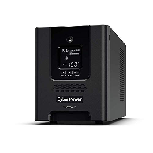 CyberPower PR2000SLJPは無停電電源装置(UPS)で、ラインインタラクティブ給電を行います。出力は1800VA/1800W、企業用に設計されており、家庭用コンセントには対応していません。3年保証付き。