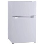 アイリスプラザの冷蔵庫(87L)は幅47.5cmで、省スペース設計。一人暮らしに最適。冷蔵室61L、冷凍室26L、7段階温度調節可能な直冷式。カラーはホワイト。