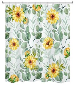LB ひまわり 緑の葉 シャワーカーテン 春の植物 緑色の葉 太陽の花 浴室カーテン 防水防カビ加工 多機能カーテン 目隠し 間仕切り 遮光 布地 リング付属 150x180cm