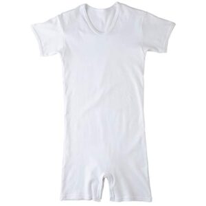 [ハナサンテラス] 介護 肌着 男性 下着 ワンタッチ ホック 大人用 ロンパース 介護つなぎ 綿100% 半袖 (L)