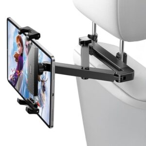 【令和7年新型・三角構造】 TOPGO車載タブレットホルダー 後部座席 伸縮アームスタンド スマホホルダー 360度回転 簡単取付 安定性が向上 折り畳み式 ヘッドレスト ホルダー バーの適用幅範囲8cm~15cm 4.7-13インチ 26mm 厚手対応 アイパッド/スマホ/スイッチ/モニターに対応