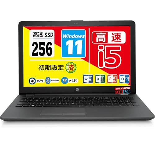 HP 250 G7 ノートパソコンは、15型大画面、Webカメラ、Windows 11、Office 2024、16GBメモリ、Core i5 8265U、高性能SSD 256GB、HDMIポート搭載で初期設定済みです。