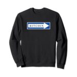 Bitcoin道路標識トレーナーは、前方に向かう道を示し、下り坂のデザインでユニーク。ビットコイン愛好者必見、カジュアルな生活で存在感を放つアイテム。