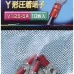 エルパの絶縁Y端子1.25-5は、20.0mmサイズで適合電線はより線0.25~1.65㎟。10個入り、レッド色のPS-074H(R)です。