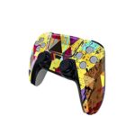 PS5コントローラ用スキンシール。全面セットで保護フィルム付き、カラフルなイラストデザインが特徴的。個性的なペイントであなたのゲーム体験を彩ります。