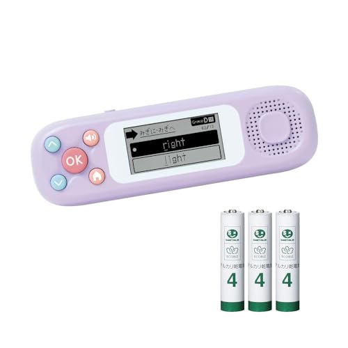 ピコトレは、小学生向けの英単語学習機で700単語を収録。バイオレット色のデザインで、持ち運び便利なサイズ。セットにアルカリ単4電池×3本が付属し、すぐに使い始められます。