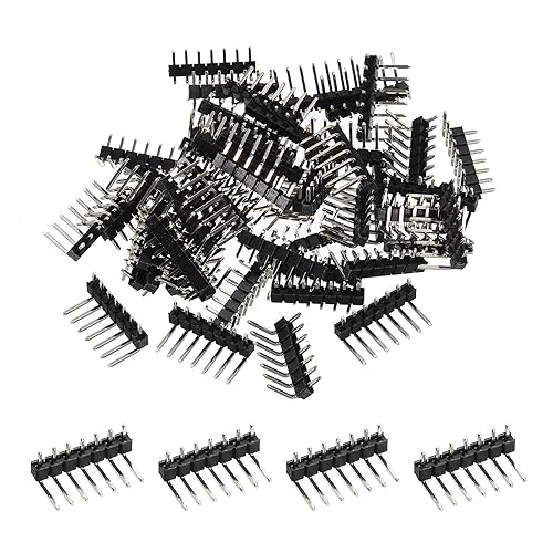 PATIKIL ライトアングルピンヘッダー DIP 1列 7ピン 2.54mmピッチ 金メッキPCBが50個入り。高品質な金メッキ処理で、信号伝達の安定性を確保。