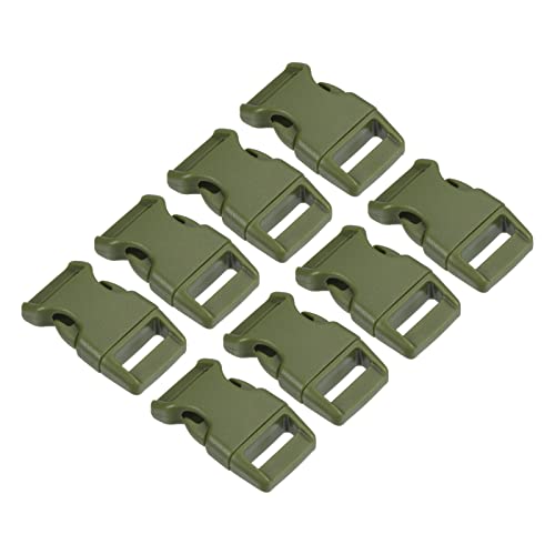 PATIKILのプラスチックバックル(8個入り)は、クイックリリース機能で便利。16mmのストラップに対応し、バックパック修理や手芸プロジェクトに最適なオリーブ色です。