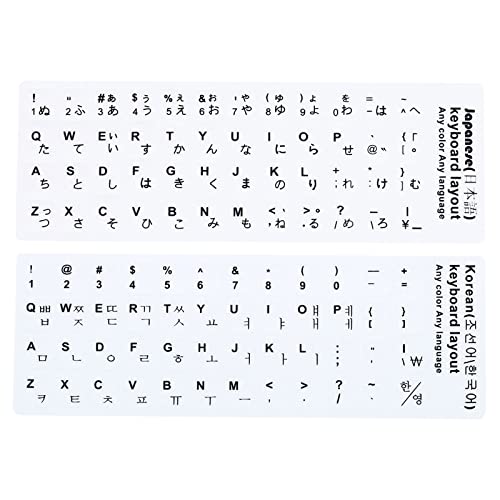 PATIKILの韓国語と日本語キーボードステッカーは2個セット。ユニバーサルサイズでつや消し仕上げ、ホワイトバックグラウンドにブラックレタリング。ノートパソコン用として最適です。