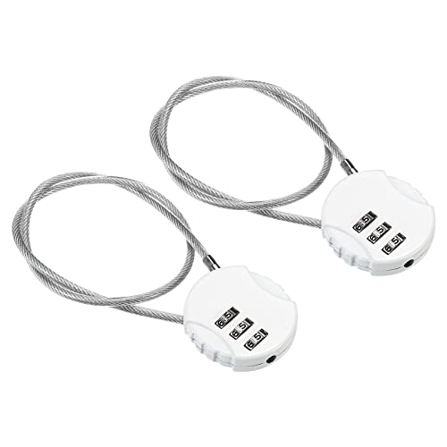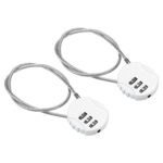 PATIKIL 2個セットの38cmセキュリティワイヤー。3桁ダイヤル錠付きの4cm南京錠で、ワイヤー式の防犯ロープとしてスーツケースや貴重品の盗難防止に最適です。カラーはホワイト。