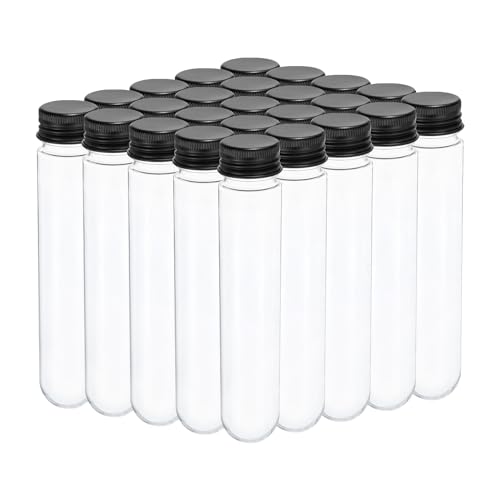 PATIKIL 80ml プラスチック ネジ蓋付き試験管 25個 156x30mm チューブ 科学パーティーの装飾用 あめビーズの保管場所 バスソルトの研究室での使用 ブラックの高価買取