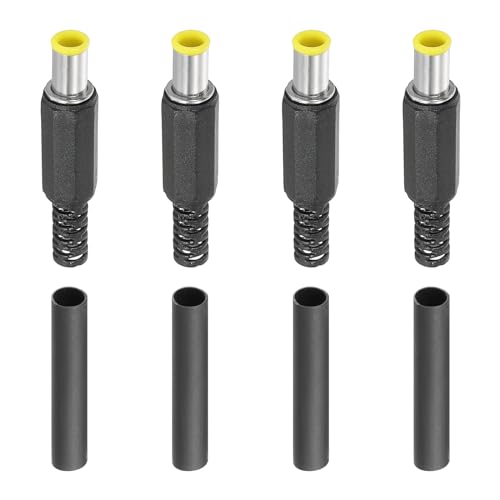 / PATIKIL 6.0×4.4mm DCオスプラグ電源端子 直流プラグ電源端子 直流管コネクタ 4個入り 熱収縮管付き DIY用 イェロー