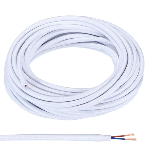 PATIKIL ファブリック布カバーラウンドワイヤー 10 M 18AWG 2コア ヴィンテージ編み電気コード ペンダントライトDIYプロジェクト用 ホワイトの高価買取