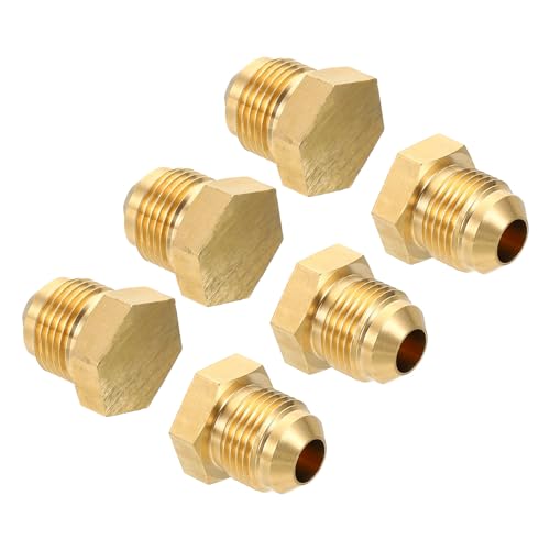 PATIKILの男性用1/2″真鍮シールプラグは、SAEフレアチューブフィッティングに対応し、45度六角パイプフィッティングとしてエアコン冷凍装置に最適です。6個入りで、耐久性に優れています。