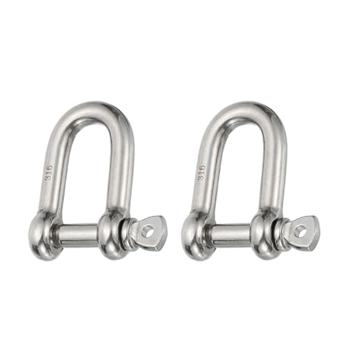 PATIKIL スクリューピンシャックル 10mm 3/8インチ 1100lb 耐荷重の2個セット。316ステンレス製のDシャックルはマリングレードで、チェーンやワイヤーロープに最適。アウトドアに最適なシルバーのデザインです。