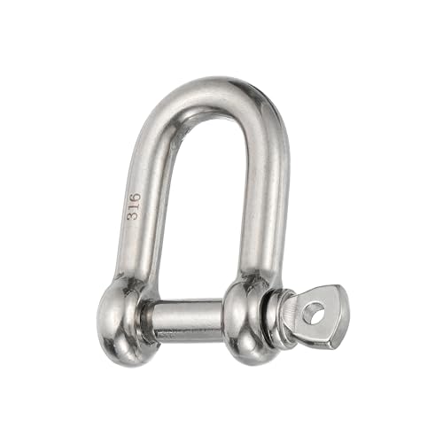 PATIKIL スクリューピンシャックル 10mm 3/8″ 1100lb 316ステンレス鋼製のDシャックル。海洋グレードで、チェーンやワイヤーロープ、アウトドアでの使用に最適。カラーはシルバー。