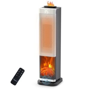 セラミックヒーター タワー型【2026新登場・3D水蒸気LED暖炉】【1秒速暖大風量】擬似炎加湿機能付き 人感センサー搭載 8時間連続加湿 15〜35℃温度調節 ECOモード省エネ 1200W電気ヒーター 3重過熱保護 転倒OFF 節電対策 280MLタンク 窓下結露対策/リビング/寝室/洗面所/オフィスに適用 (ブラック)