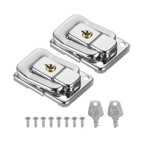 PATIKIL スーツケースロックハスプは、1.6″ x 1.10″のサイズで、鉄製のトグルキャッチロックが2個セット。キーとネジも付属し、宝飾品ボックスや木製ケース、工具箱に適したシルバーのラッチ金具です。