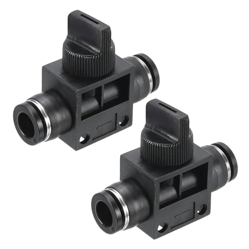 PATIKIL 8 mm 空気圧ボールバルブは、外径8 mmのプッシュ接続チューブ継手で、ストレートエアフローをコントロールします。エア油圧用の黒とシルバーのデザインが特徴です。2個セットで提供されます。