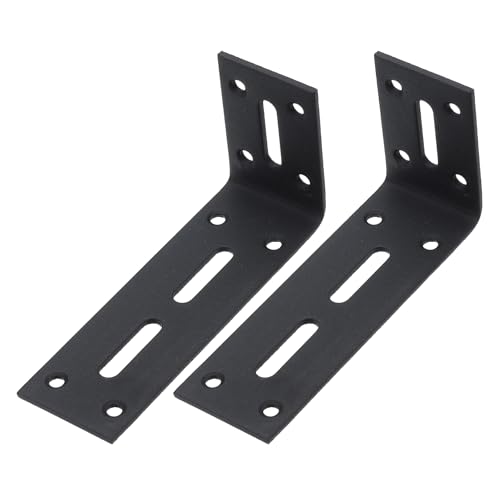 PATIKIL L字金具 120*40*60mm スロット付き 2個セット。調節可能なフロー ティングシェルフブ ラケット。直角コーナーブレースで木製棚や家具棚に最適な黒の金具です。