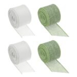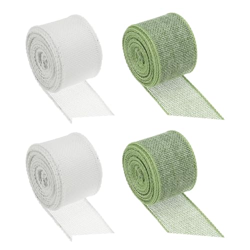 PATIKIL麻布リボン4ロールセット。幅4cm、長さ4.5m。ナチュラル調でDIYに最適。針金入りで秋・クリスマス飾りやリース装飾にぴったり。色は緑とホワイトの2色。