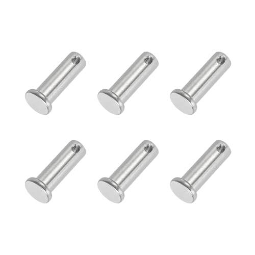 PATIKIL クレビスピン 6個セット、サイズ10mm x 30mm。シングル穴、304ステンレス製のフラットヘッドピンで、機械や家具、芝刈り機に最適。シルバー仕上げ。