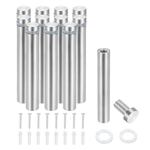 PATIKIL 1/2インチ x 3.2インチのスタンドオフスクリューは、ステンレススチール製で耐久性があります。8個入りで、壁掛け看板や広告の取り付けに最適。シルバーの仕上げが美しいアクリルピクチャーフレームにも対応。