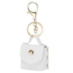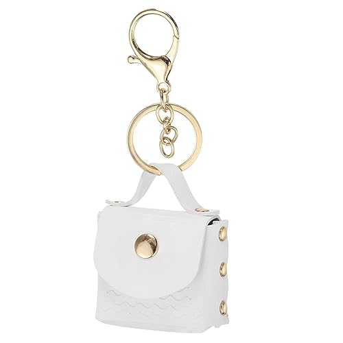 PATIKIL女性用ミニハンドバッグキーホルダーは、PUレザー製で優雅でキュート。化粧品やカード、データケーブルを整理できるジッパーポーチ。ホワイトのデザイン。