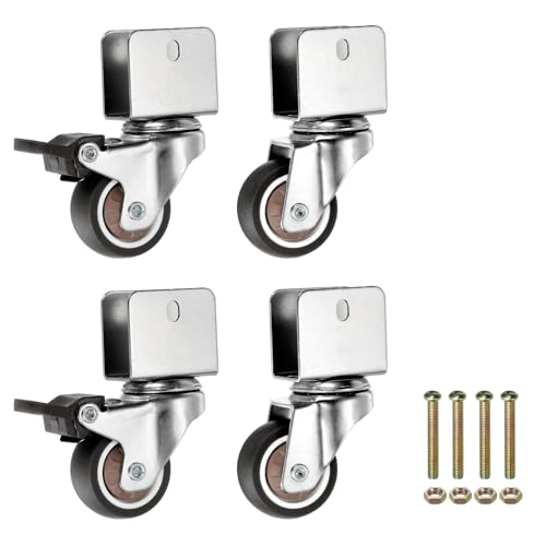 PATIKIL 1.5インチキャスターは、4個セットで、2個がブレーキ付き、2個がスイベルです。耐荷重は55ポンド、サイズは0.8インチのUサポート開口で、家具や事務所チェア、カート、戸棚に最適です。茶色のデザインです。
