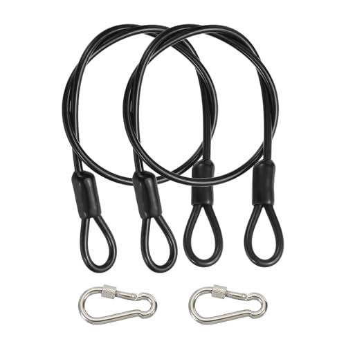 PATIKIL セキュリティ ケーブルは、2 ft × 3/16インチサイズの黒いステンレス製で、ダブルループ付き。旅行や自転車のロックに最適な安全ワイヤーロープです。