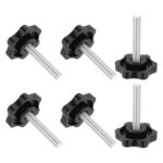 PATIKIL M6 x 34mm スレッド スター ノブ 6個セット。プラスチック製で、ハンドルやクランプに最適。ボルト付きで、傘スタンドや木工工具の交換に便利。色は黒。