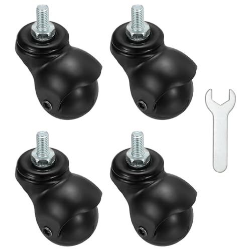 PATIKIL 1.5インチボールキャスターホイール4個セット。360度回転、スレッドステム式で工業用家具に最適。電気めっき仕上げの黒色。
