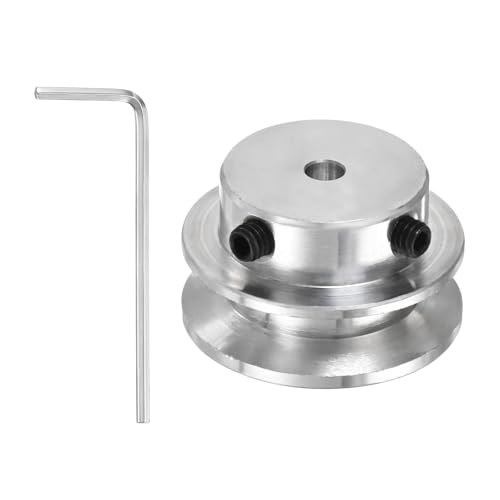 PATIKIL 4mm 固定穴の30mm ODシングルグルーブプーリー。モーターシャフト用のアルミニウム合金製、六角レンチ付き。5-6mm PUラウンドベルト対応、シルバー仕上げ。