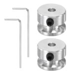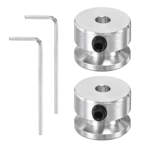 PATIKIL 4mm 固定穴、16mm ODのシングルグルーブプーリー2個セット。アルミニウム合金製で、六角レンチ付き。モーターやボール盤用の4mm PUラウンドベルトとともに使用可能。シルバーの仕上げ。