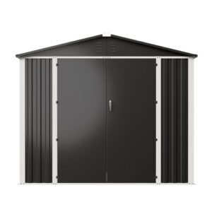 簡単組み立て 物置 大型 簡単組み立て GRESS メタルシェッド ダブルドア チャコール 観音開き 倉庫 物置小屋 屋外 収納庫 8×6フィート 【法人(会社)・個人宅配送不可】