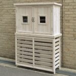 ガーデンガーデンのボーダーエアコン室外機カバージャンボは、ポタジェ収納ユニットとトールボックスセットを含むウォッシュホワイト仕様。耐候性に優れ、エアコン室外機を保護しながらお洒落に収納可能です。