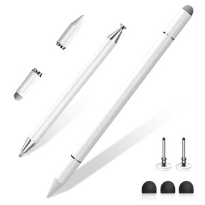 タッチペン 3in1 全機種対応 スタイラスペン 充電不要 磁気キャップ 静電容量式タッ チスクリーン対応 円盤型ペン先 ディスクチップ ニュートラルなペン先 高感度交換用ペン先付き (2ディスク+3導電繊維付属) (ホワイト)