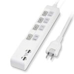 STYLED USB付き電源タップ 2m 延長コード 合計4.8A出力 18ヵ月保証 USBポート 2ポート ACコンセント 4個 USB充電 急速充電 雷ガード 個別スイッチ 1400W (コンセント4口・USB4.8A, ホワイト・1個・コード2m)の製品情報