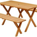 ガーデンマスターのピクニックガーデンテーブル&ベンチ3点セット(PTS-1205S)は、木製でテラスや庭に最適。ダイニングテーブルとしても使用でき、パラソルホール付きで夏場も快適。