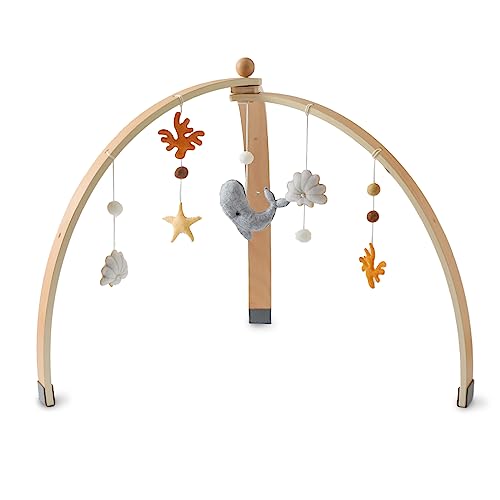 Etucdoseの木製ベビージムは、おしゃれな海洋動物デザイン。コットン製おもちゃやハンギングトイ付きで、赤ちゃんの早期教育に最適。折りたたみ式で室内遊具としても便利。出産祝い、誕生日プレゼントにおすすめ。
