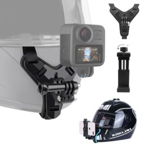 顎マウント ウェアラブルカメラ【カメラ・スマホ両用】 顎マウント GoPro ゴープロ アクセサリー スポーツカメラ用 フリーサイズ ブラックGoPro Hero Max 13/12/11/10/9/8/7/6/5, Insta360 One R X2 X3 X4, DJI Osmo Action 3/4APEMAN、LEVIN、MUSON、AKASO互換 バイクヘルメットホルダー