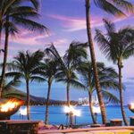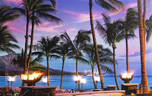 栗山義勝氏のハワイアンキャンバスパネル絵、点灯式デザイン。美しいラムファイヤーとダイヤモンドヘッドを描いたインテリア雑貨。お土産にも最適な一品です。