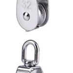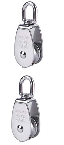 ヘルスリフェのステンレス製滑車は、SUS304 18-8ステンレスを使用し、呼び32mmで、貨物輸送や荷揚げに最適。屋内外で活躍するスィベルタイプのプーリーが2個セットで提供されます。