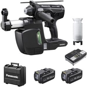 パナソニック 充電ハンマードリル 18V 5.0Ah電池パック×2個/充電器/プラスチックケース/集じんシステム付 デュアル (14.4V/18V) 軽量 3.35Kg EXENA Pシリーズ EZ1HD1J18V-B ブラック