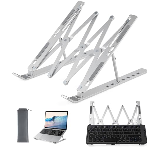 PENGの大型ノートパソコンスタンドは、アルミ製で軽量、7段階の高さ調整が可能です。滑り止め付きで折り畳み式、姿勢改善に最適。テレワークや在宅勤務に最適なデザイン。macにも対応し、収納袋付き。