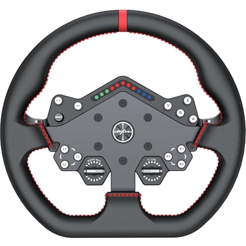 PXN WDS R2 ゲーミングレーシングホイールは、D1クイックリリース、F1スタイルのシフトレバー、ダイナミックRGBライト、レザーグリップを備え、11.8インチのPCステアリングホイールでVD4/VD6/VD10ダイレクトドライブベースに対応。