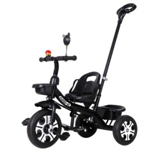 子供用三輪車4in1は、1歳から6歳まで使用可能。押し棒付きで、安全に運転をサポート。ハンドルとサドルは調整可能で、成長に合わせて最適な高さに。持ち運びも便利で、お祝いなどのプレゼントに最適なブラックカラーです。