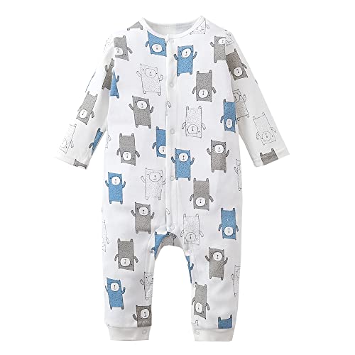 Baby nestのベビー服は、長袖のカバーオールで、赤ちゃんにぴったりのロンパースです。北欧風の可愛いクマ柄で、柔らかい綿100%素材。0-3ヶ月用のルームウェアとして最適です。