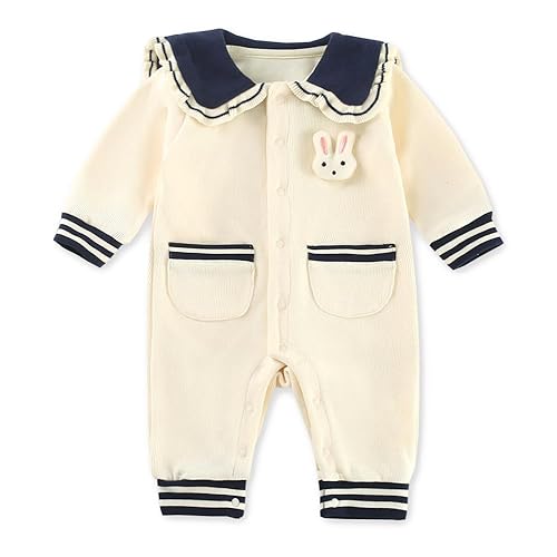 Baby nest ベビー服 女の子 カバーオール ロンパース 長袖 赤ちゃん服 前開き 子供服 新生児服 かわいい ベージュ ネイビー 73 6-9ヶ月の高価買取
