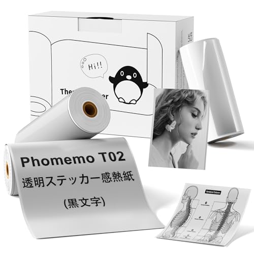 Phomemo T02用紙 純正 透明粘着感熱紙 プリンタ用紙 3巻セット ロールペーパー テープ モバイルプリンター用 シール 印刷用紙 接着剤ある 感熱紙 印刷シール ロール紙 幅53mm 長3.5m 手帳/勉強/落書き/メモ/仕事/オフィス/啓発教育/ラベル/整理収納に適用 (Phomemo T02/M02/Q02/M02Lシリーズに適合)の製品情報
